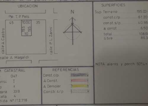 Casa en venta en barrio Aeropuerto sobre Pasaje Fels, entre Castro y Zanni.