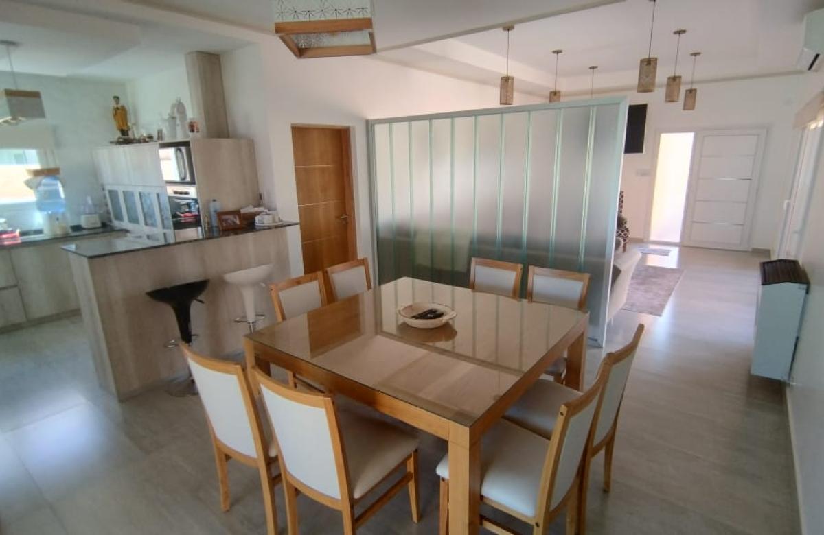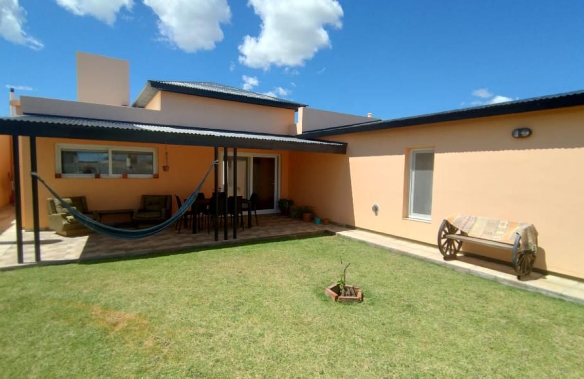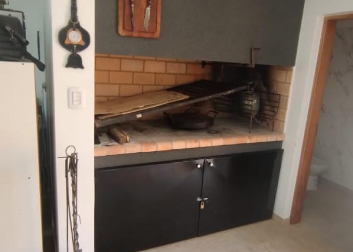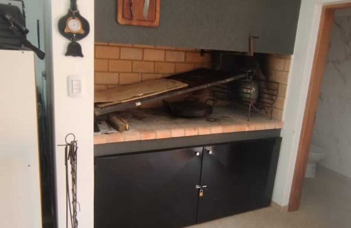 El inmueble cuenta con dos dormitorios, tres baños, living, cocina comedor, garage/quincho con parrilla, cochera para dos autos, patio con pileta y jardín parquizado.