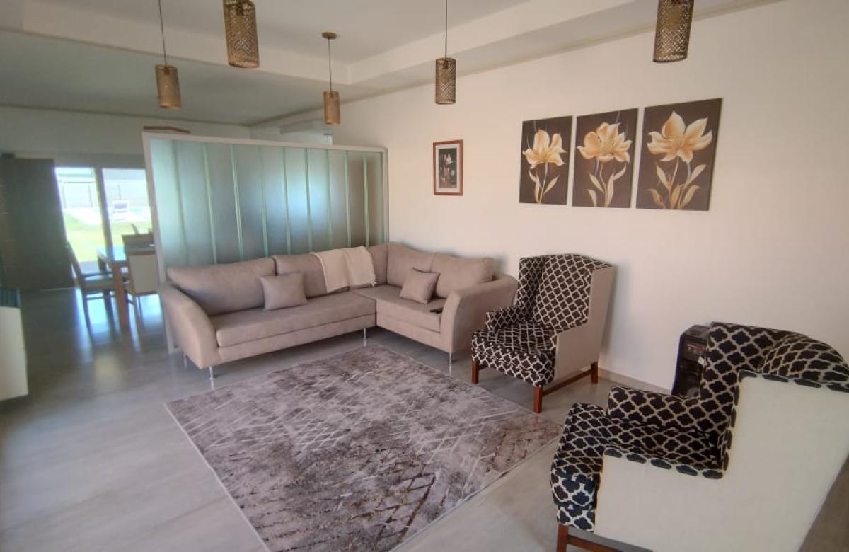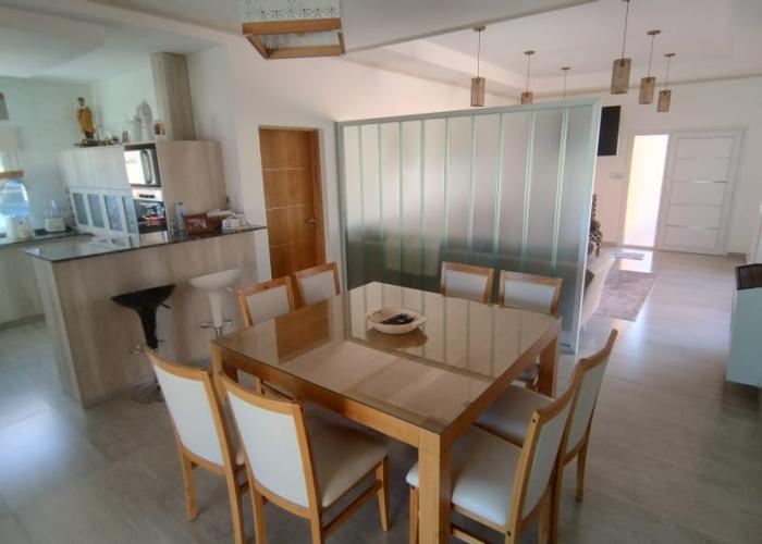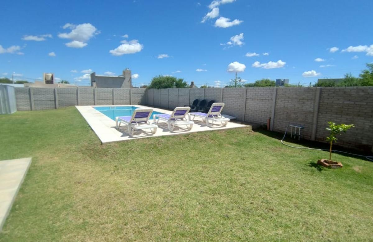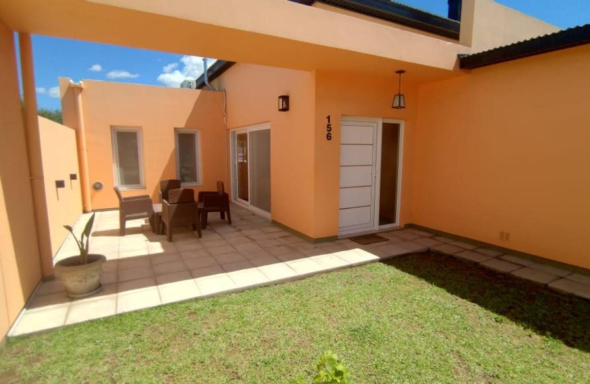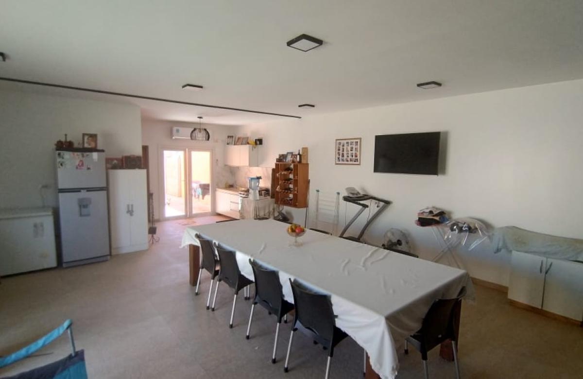 El inmueble cuenta con dos dormitorios, tres baños, living, cocina comedor, garage/quincho con parrilla, cochera para dos autos, patio con pileta y jardín parquizado.