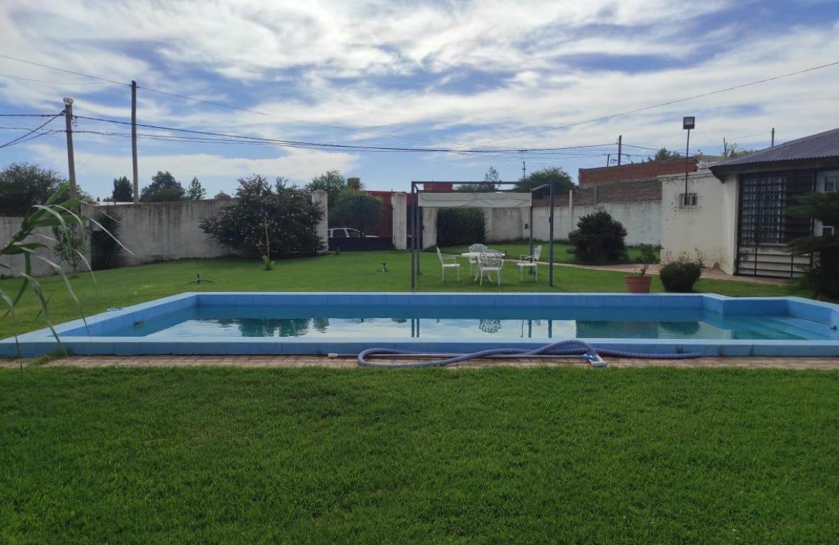 Casa quinta compuesta de tres dormitorios, cocina, comedor diario, dos baños, depósito, garage. También posee quincho con baño y parrilla. Patio grande con pileta.