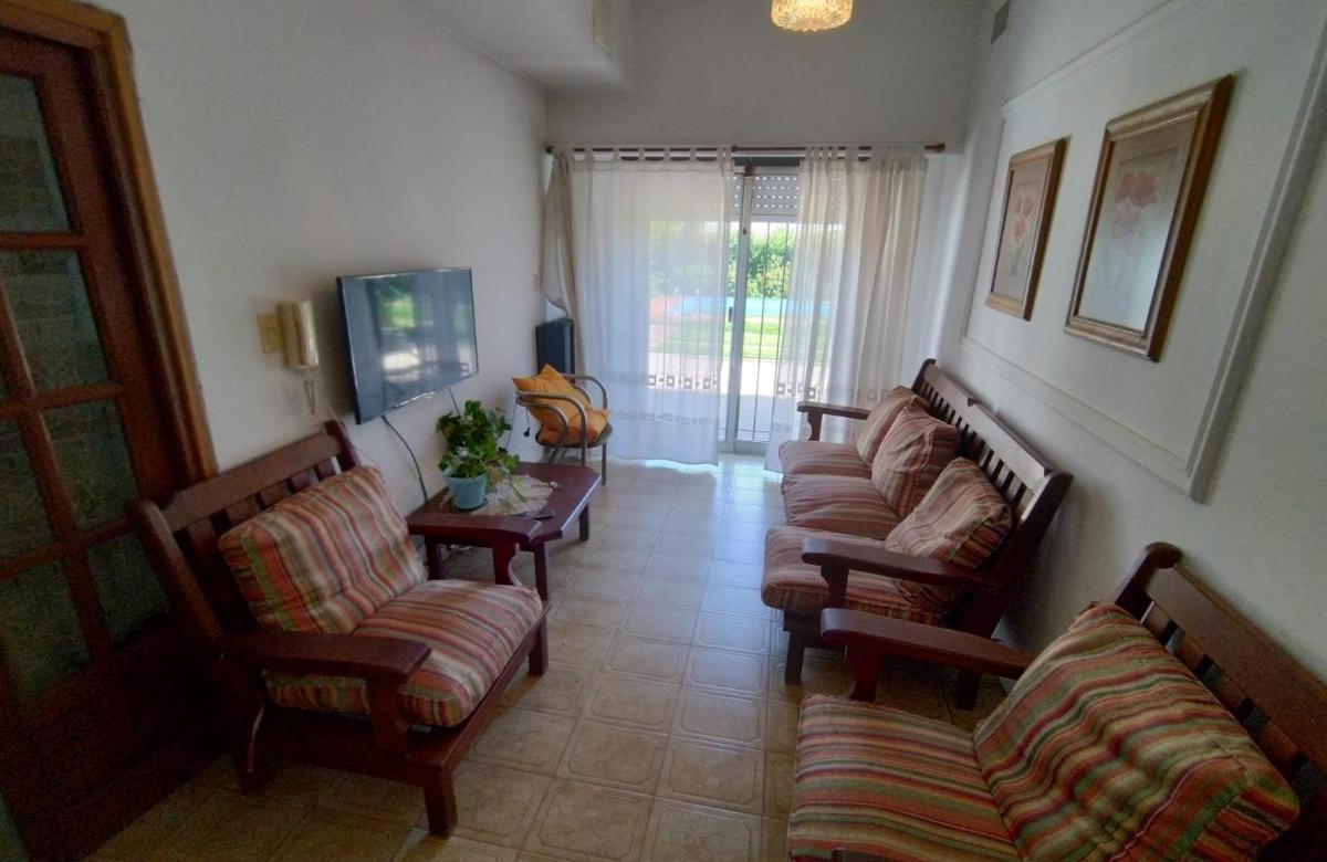 Compuesta de dos dormitorios, living, comedor, cocina, dos baños, lavadero y patio amplio con pileta.