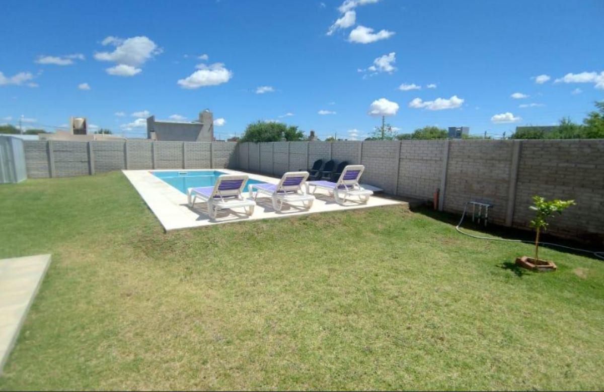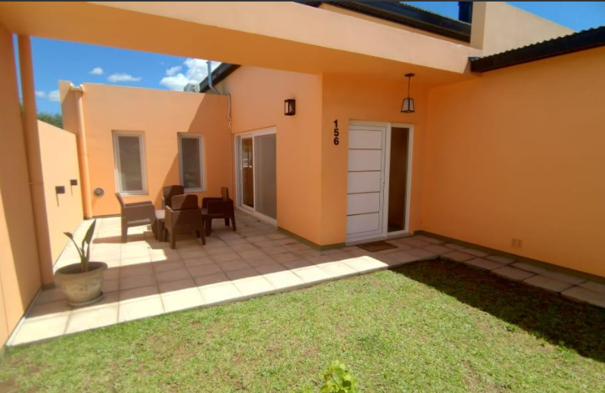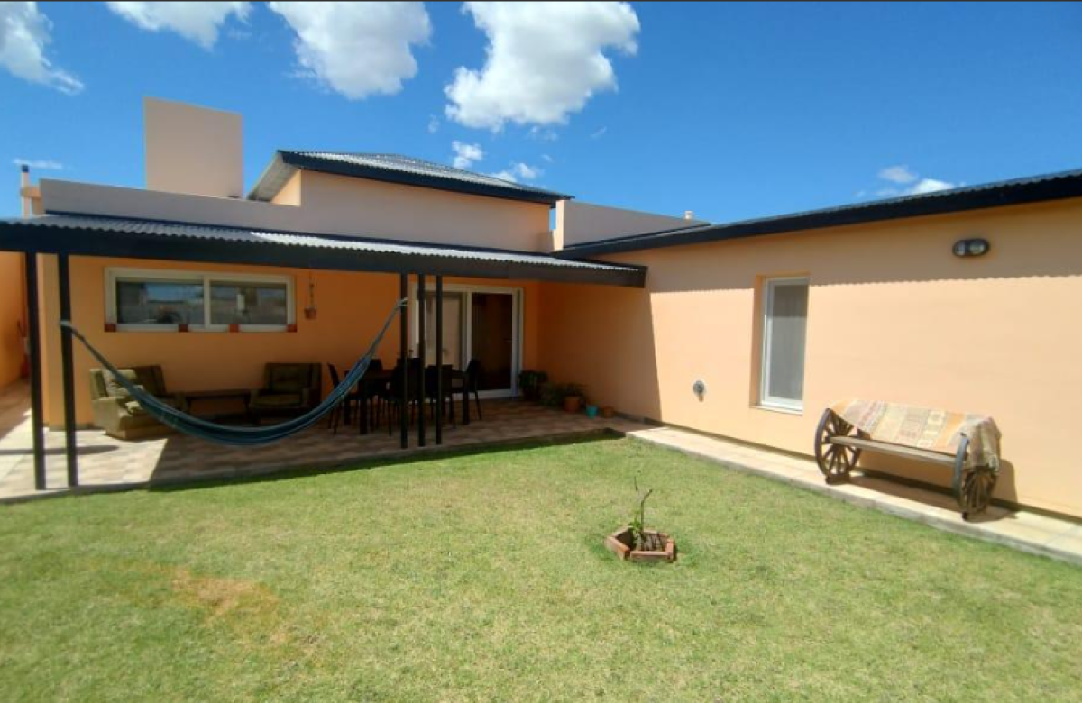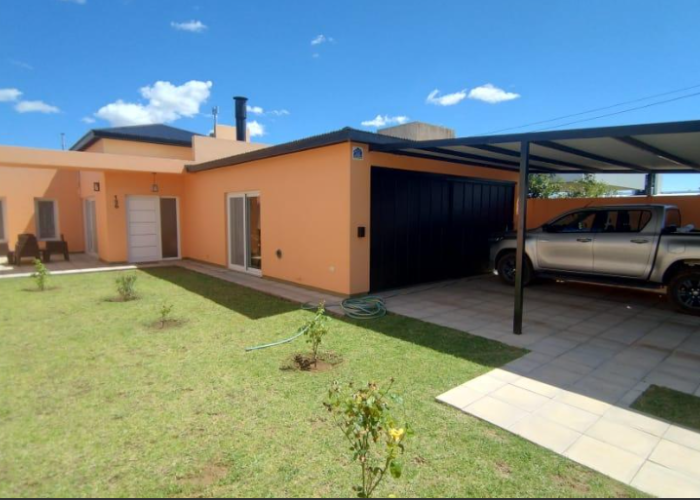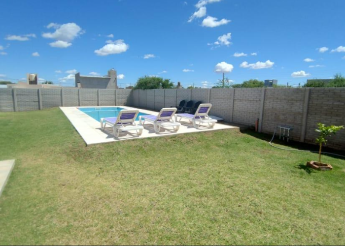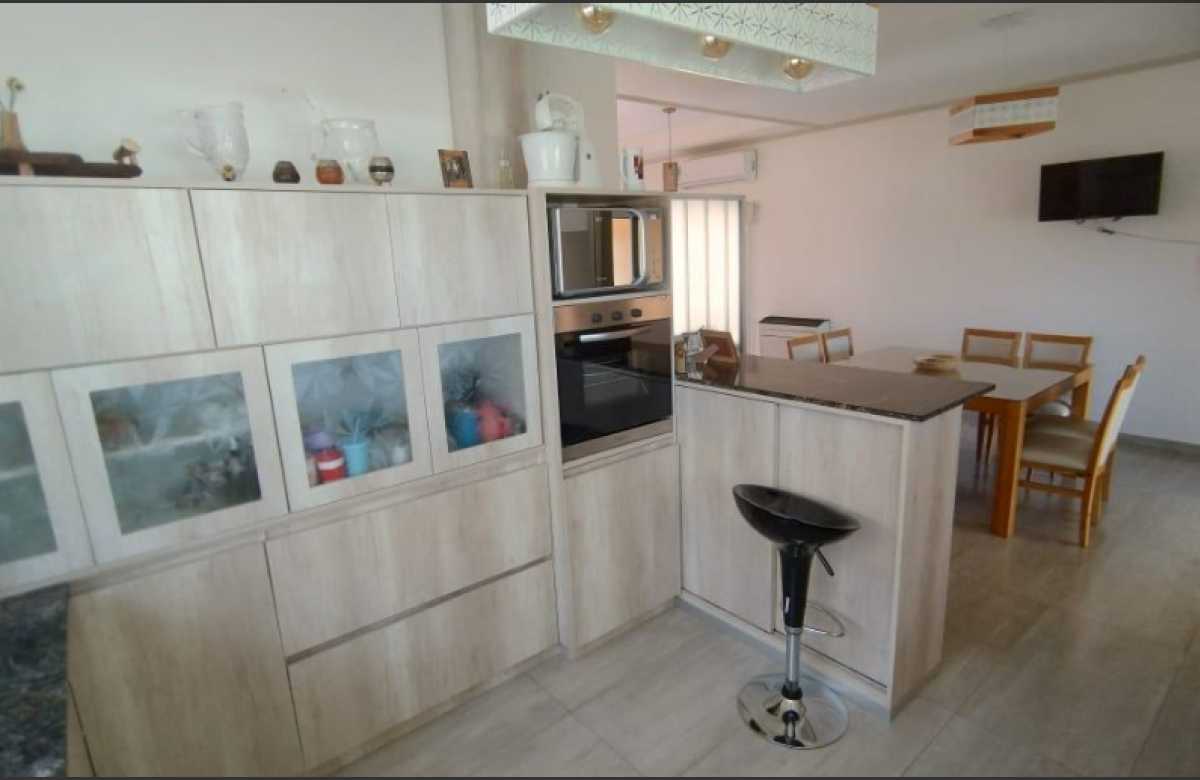 El inmueble cuenta con dos dormitorios, tres baños, living, cocina comedor, garage/quincho con parrilla, cochera para dos autos, patio con pileta y jardín parquizado.