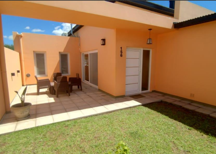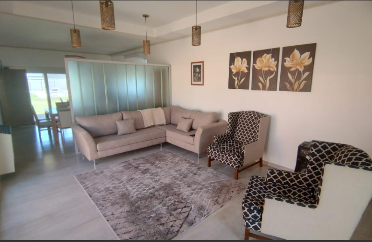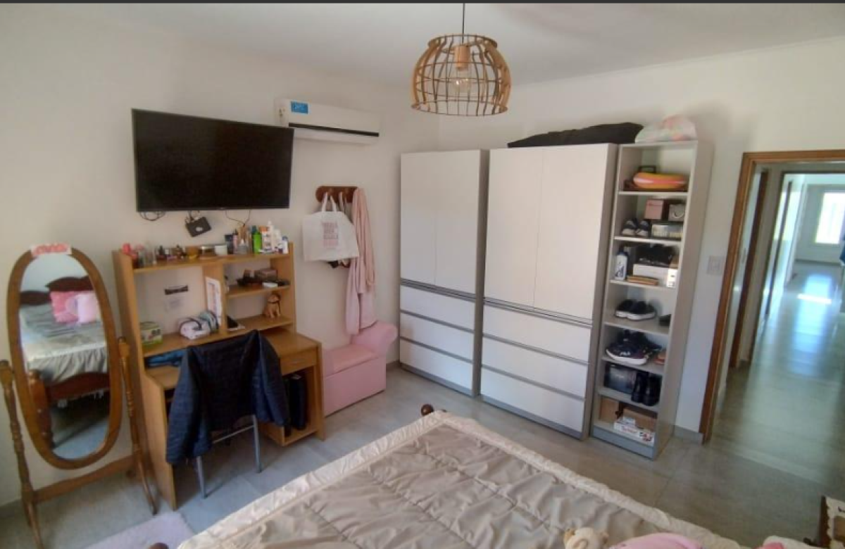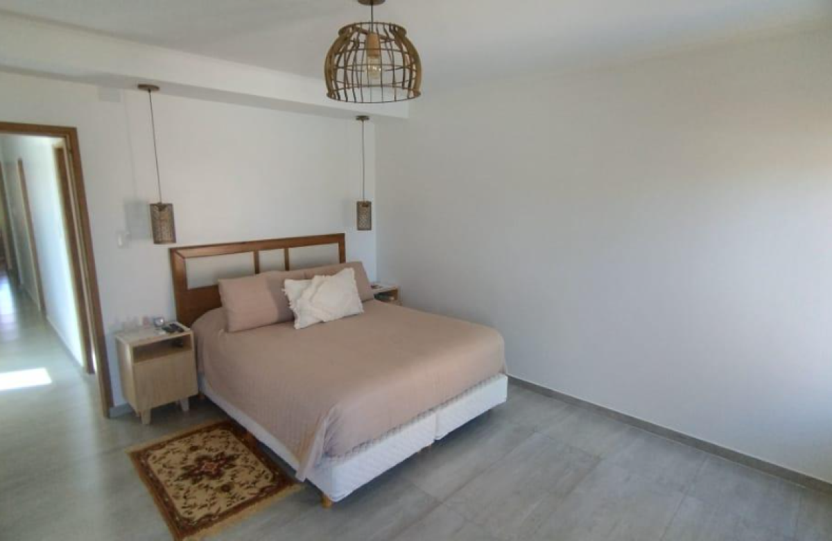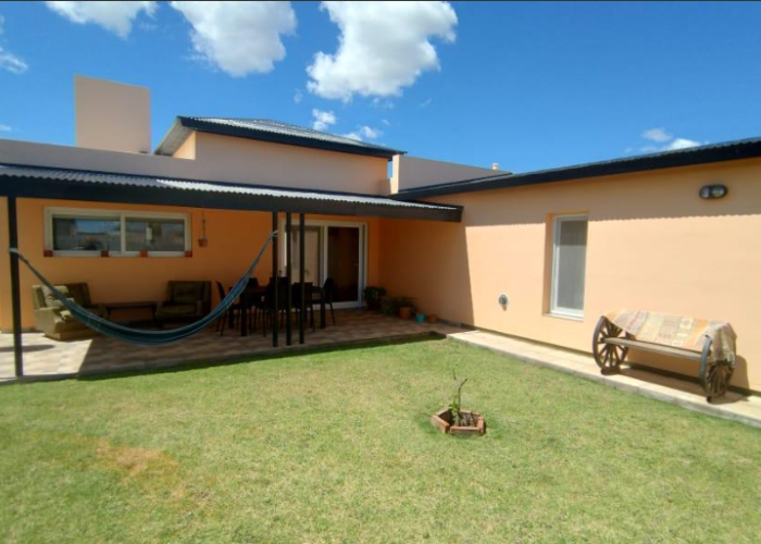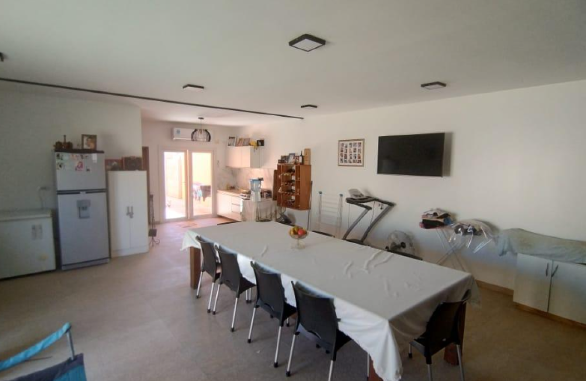 El inmueble cuenta con dos dormitorios, tres baños, living, cocina comedor, garage/quincho con parrilla, cochera para dos autos, patio con pileta y jardín parquizado.